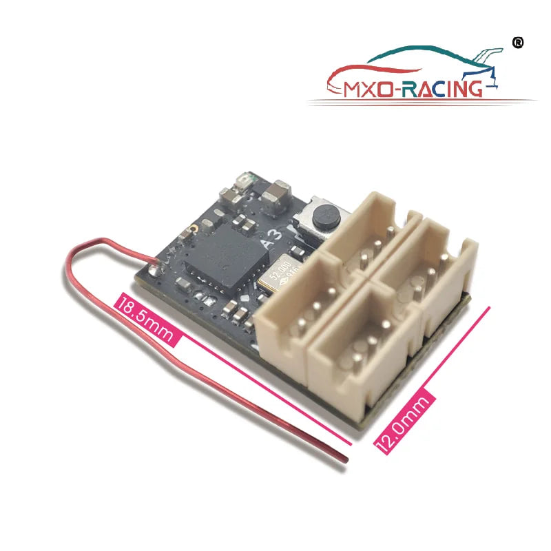 MXO's :Nano" JST-ZH 1.5 pitch ZH, receiver for the ever popular NB4 radio transmitter! Tiny foot print, light, attractive protective case. Just 1.25 grams. 14.6 x 21.4 x8.2mm. AFHDS-3 Protocall, Hidden antenna, 3.7- 8.5 operating voltage. Perfect for the mini 1/27 scale rc cars. *Note: requires transmitter running: Nobel FW 2.0.00 or later or Nobel Pro FW 1.0.1 or later firmware. Also will work with the Paladin PL18 & Paladin PL18EV